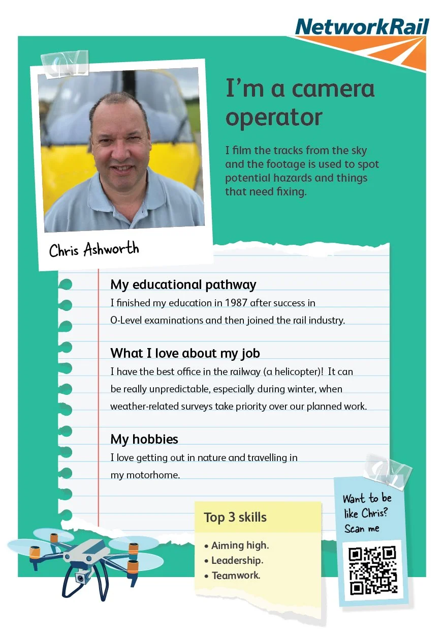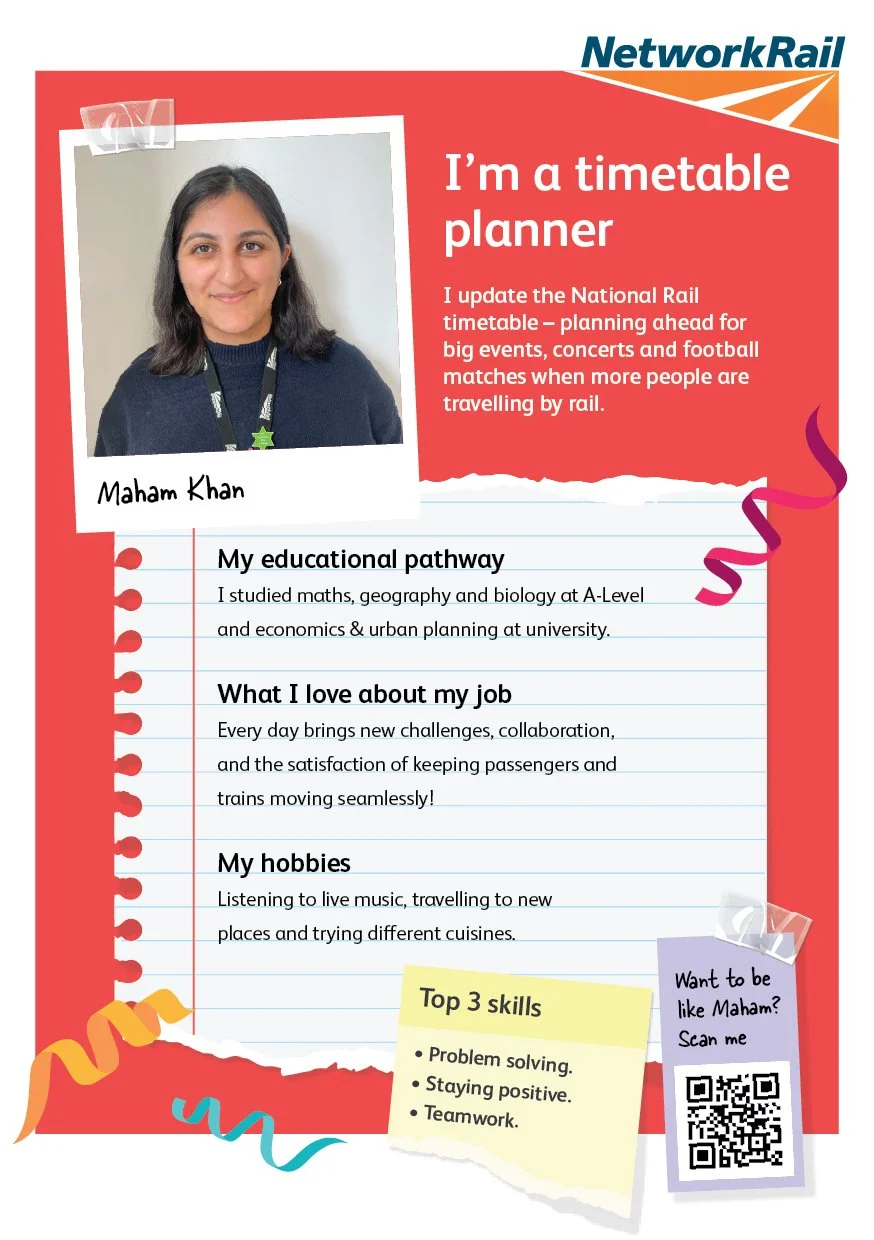 The back grounded that curiosity in reality, featuring real Network Rail employees sharing their job, background and career pathway. These stories showed that there is no single route into the railway and helped make the roles feel achievable, relatable and human.